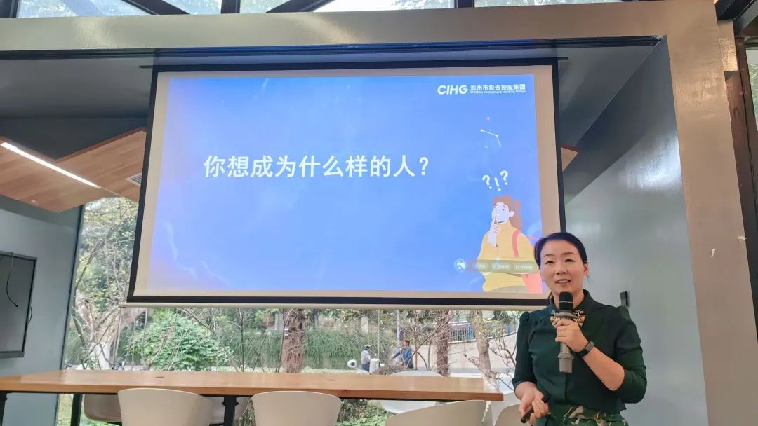 嚴艷副書記首先向學生們介紹了池州市投資控股集團的基本情況及對人才的需求,并以《員工在企業(yè)的成長路徑》為主題結合自身工作經(jīng)歷,以“你想成為什么樣的人”“能力or平臺”“家庭or事業(yè)”等問題與現(xiàn)場的學生互動講述了一名職場新人如何快速成長。
