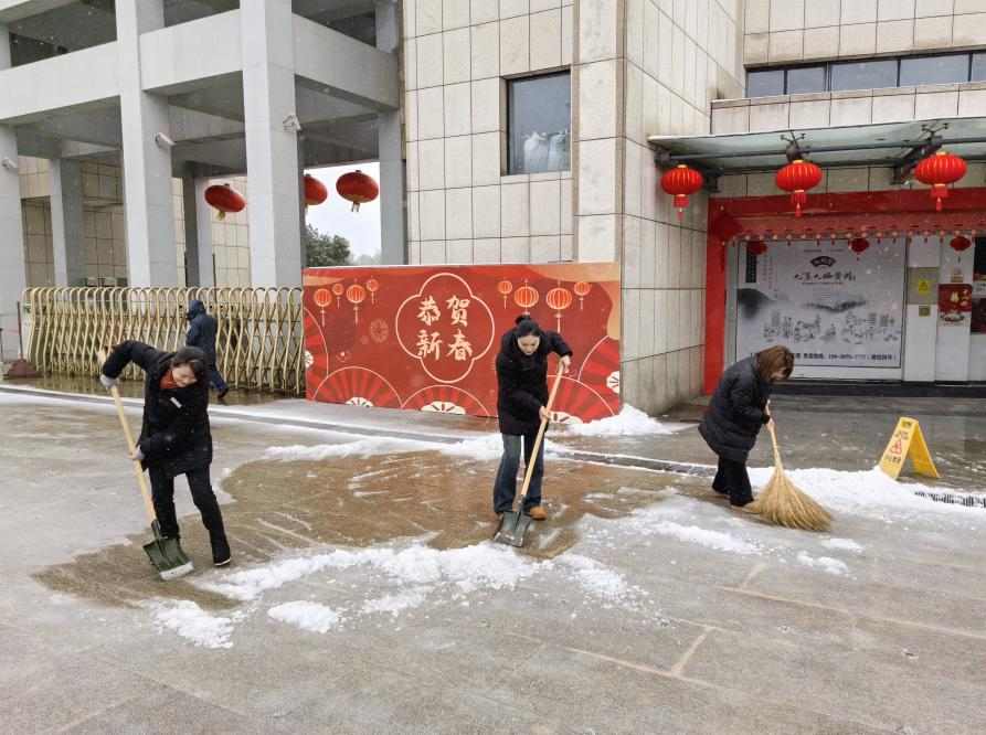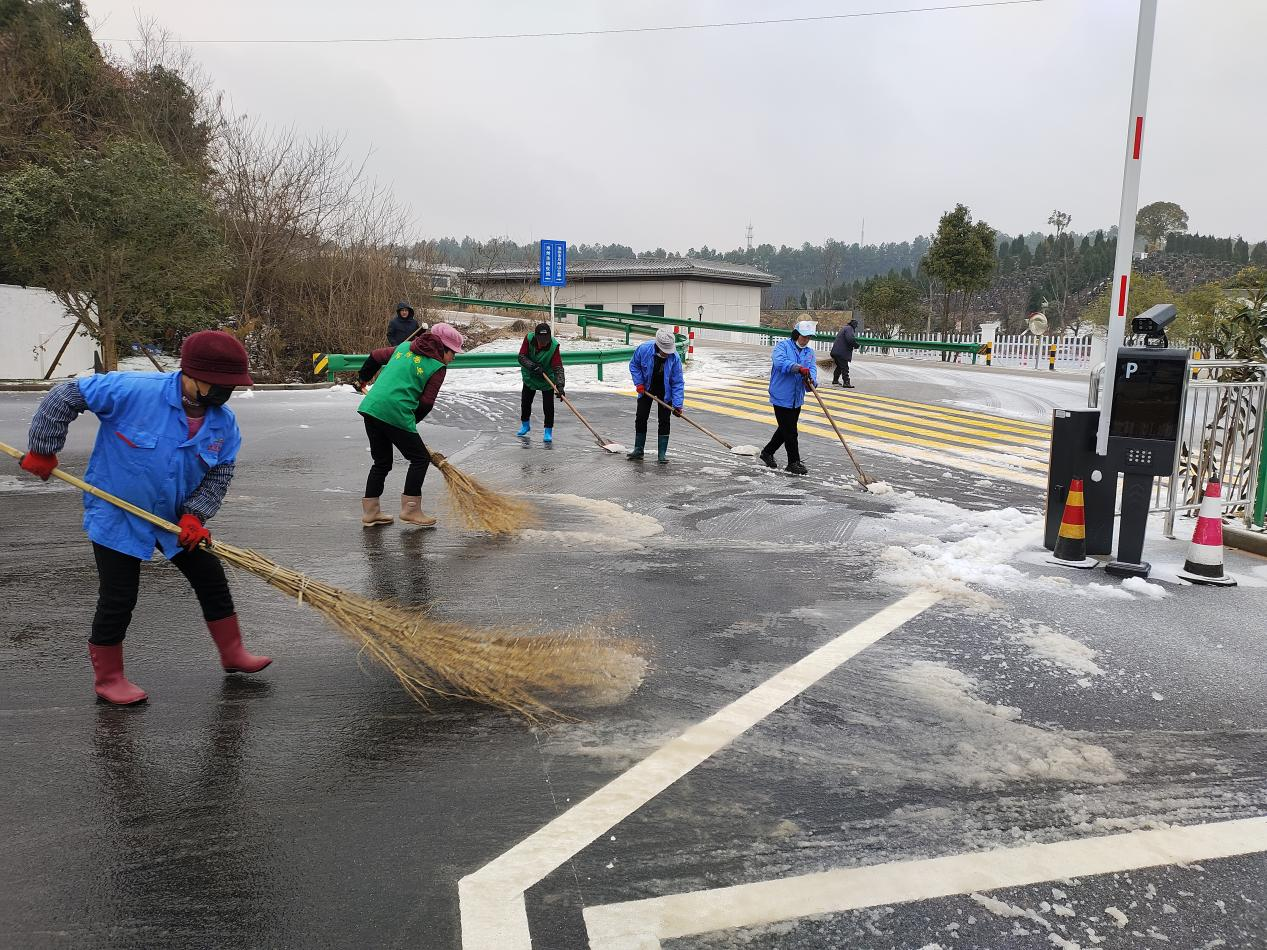 公司組織全體員工迅速投入掃雪除冰行動(dòng),安排專人在001縣道小沖口下坡段多次拋灑融雪劑,重點(diǎn)對(duì)坡道路面加強(qiáng)清雪除冰工作。全體干部職工,按照下雪應(yīng)急預(yù)案提前劃分好區(qū)域,對(duì)各區(qū)域道路的積雪進(jìn)行清掃。經(jīng)過(guò)奮力清雪除冰,通往園區(qū)和館內(nèi)道路積雪積冰情況得到有效緩解。