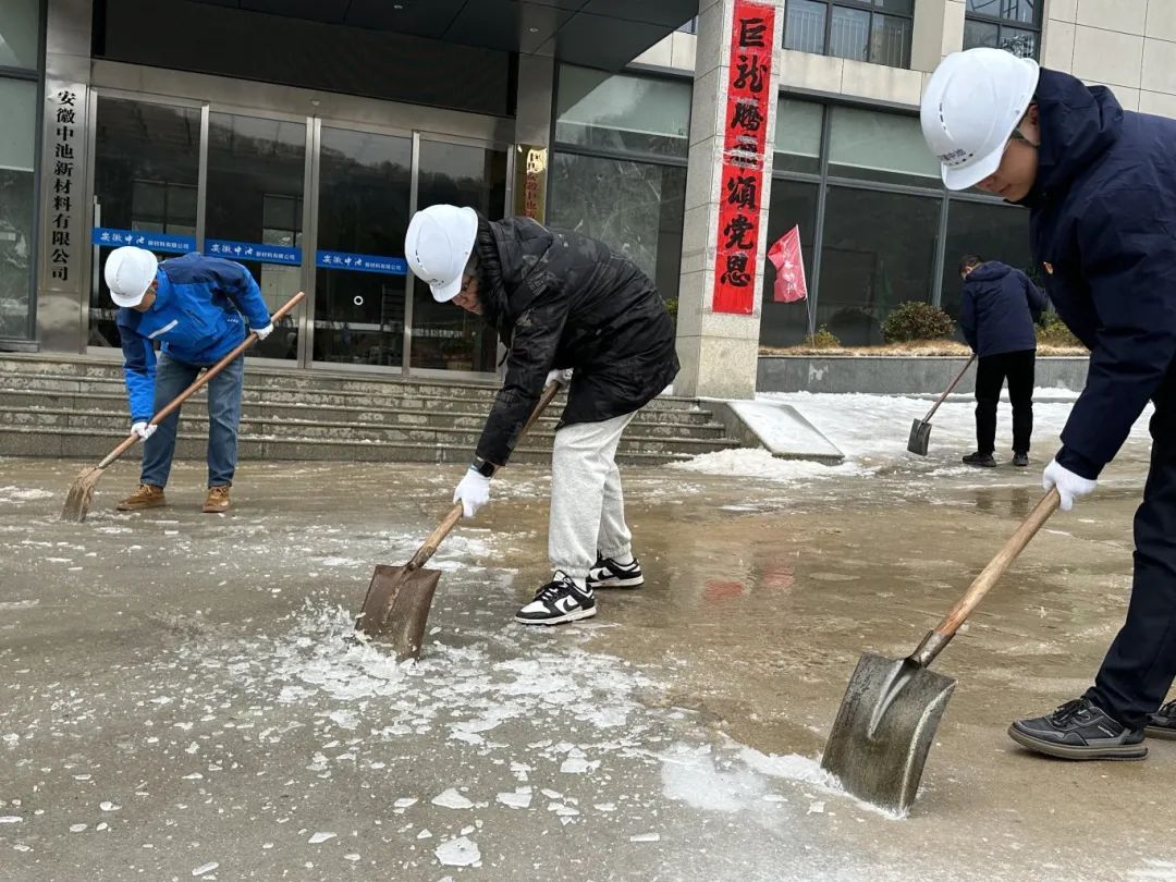 中池公司黨支部及時(shí)開(kāi)展“鏟雪除冰行動(dòng)”,組織黨員和入黨積極分子對(duì)公司大門口、主干道、公寓門前、車庫(kù)等重點(diǎn)區(qū)域的積雪和冰層進(jìn)行全面清理。采取“人工+機(jī)械”的方式,配合好鏟車將“防滑通道”延伸至礦區(qū)入口,并在重點(diǎn)區(qū)域撒上工業(yè)鹽,為來(lái)往車輛和從業(yè)人員上下班暢通道路。