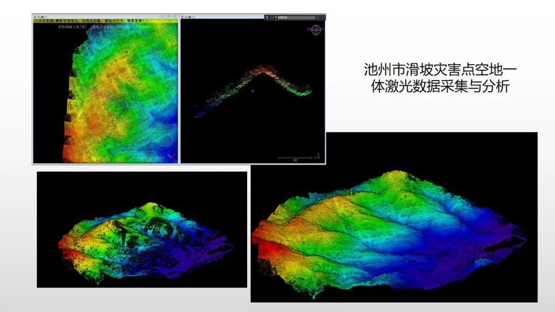 ▲池州市滑坡災(zāi)害點空地-體激光數(shù)據(jù)采集與分析