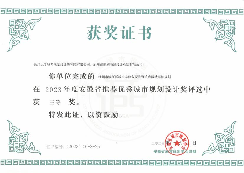 近日,安徽省村鎮(zhèn)建設(shè)學(xué)會和安徽省城市規(guī)劃學(xué)會分別揭曉了2023年度安徽省優(yōu)秀村鎮(zhèn)建設(shè)設(shè)計品質(zhì)示范工程和2023年度安徽省推薦優(yōu)秀城市規(guī)劃設(shè)計獎的獲獎名單。由集團所屬設(shè)計總院公司編制完成的《池州市貴池區(qū)梅街鎮(zhèn)姚街村村莊規(guī)劃》和《池州市濱江區(qū)域生態(tài)修復(fù)規(guī)劃暨重點區(qū)域詳細(xì)規(guī)劃》兩個項目分別榮獲2023年度安徽省優(yōu)秀村鎮(zhèn)建設(shè)設(shè)計品質(zhì)示范工程(村鎮(zhèn)規(guī)劃設(shè)計與公共服務(wù)設(shè)施)三等獎和2023年度安徽省推薦優(yōu)秀城市規(guī)劃設(shè)計獎三等獎。