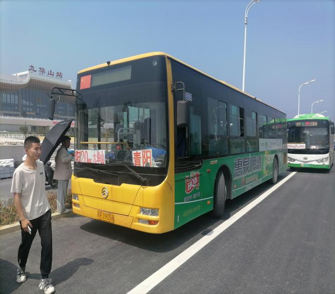 青陽公交結(jié)合現(xiàn)狀,在保障城區(qū)公交線路正常運營的前提下,對公交線路進(jìn)行優(yōu)化調(diào)整。開通臨時高鐵站公交城區(qū)線路,延伸城區(qū)1路線至高鐵站,20分鐘每班次,每天運行29班次;開通高鐵站至九華山換乘中心直通車,班次時間與高鐵時間無縫對接,同時根據(jù)客流動態(tài)實時調(diào)整發(fā)車頻次。
