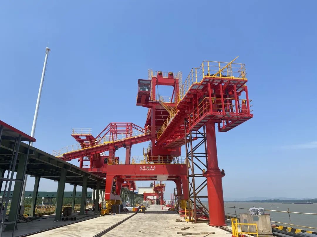 近日,池州港烏沙港區(qū)公用碼頭首臺(tái)3000t/h直線移動(dòng)式裝船機(jī)在現(xiàn)場拼裝完成,本項(xiàng)目迎來關(guān)鍵線路中的重大節(jié)點(diǎn)。